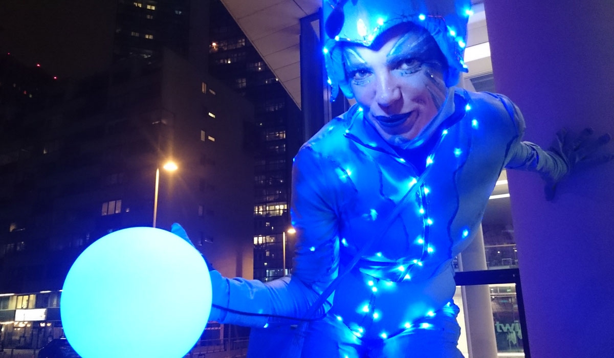 Zum Einlass an den Pforten des Twin Towers begrüßte eSteffania die Gäste direkt an den Shuttle-Bussen mit leuchtender Anmut, Glücksteinchen und ausgelassenem Spass.